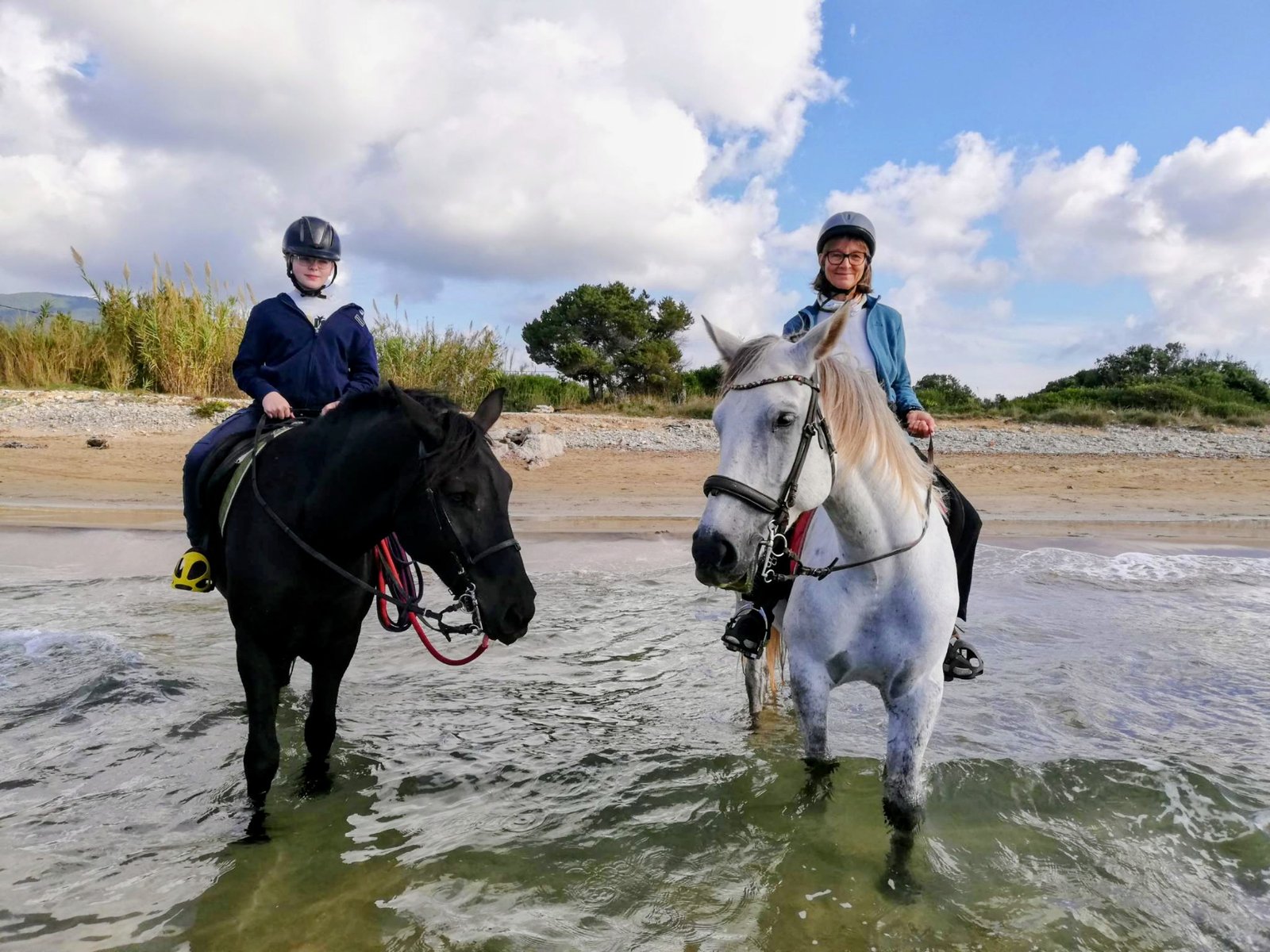 Wir haben aber bereits einen Programmpunkt für die nächsten Tage, der unseren nächsten Ankerplatz vorgibt. Lahjan hegte schon länger den Traum einmal auf einem Pferd zu reiten. Als wir dann bei unserem ersten Besuch auf Korfu einer Reklame für einen Gelände-Ausritt auf Pferden begegnen, nehmen wir kurzerhand Kontakt auf und organisieren das Event für ihn und seine abenteuerfreudige Oma. Und so sind wir nun für den 15. Oktober morgens in Petriti verabredet um die beiden fürs Reiten abholen zu lassen. Beide berichten am Ende von einem sehr schönen Erlebnis.