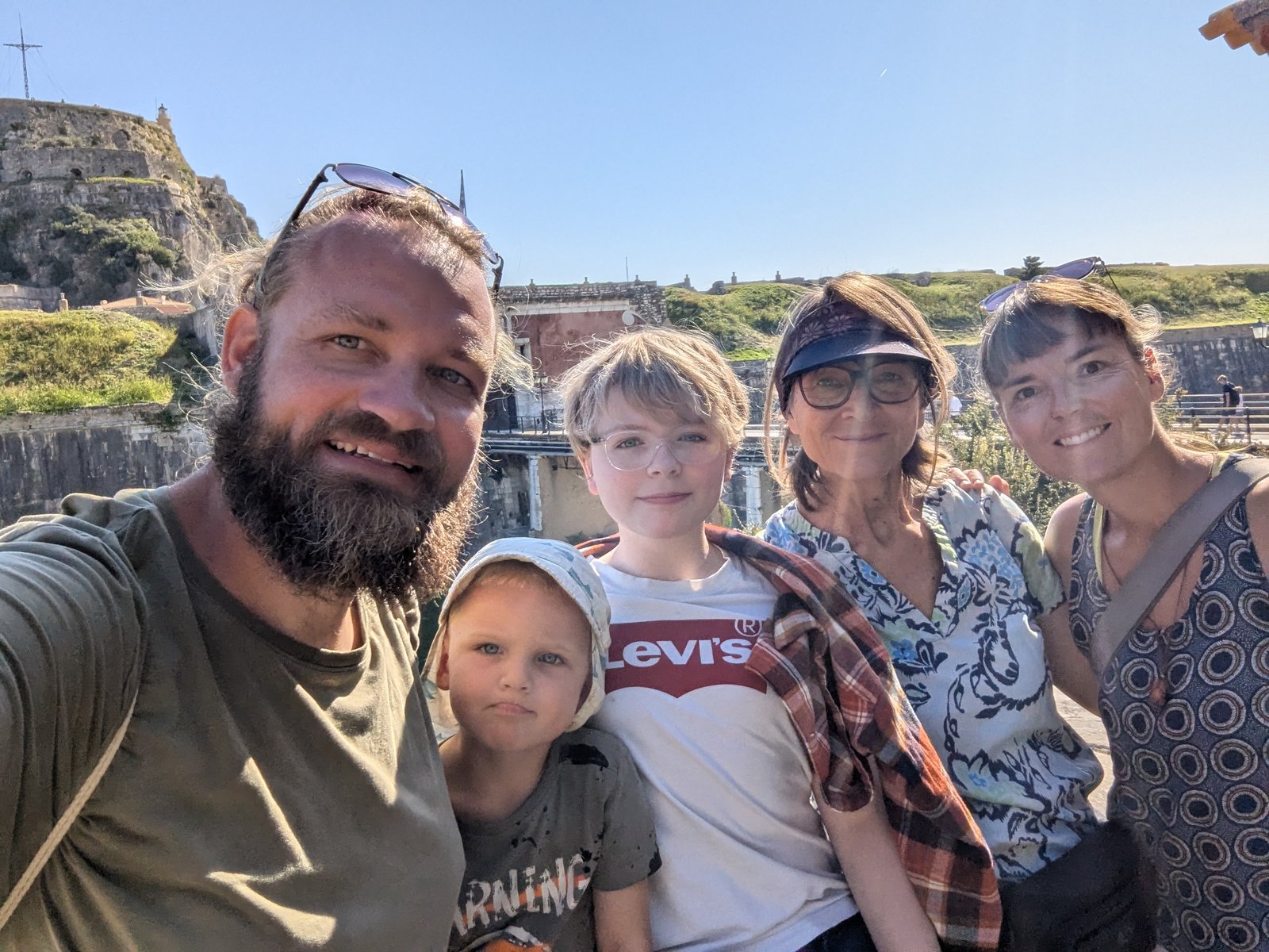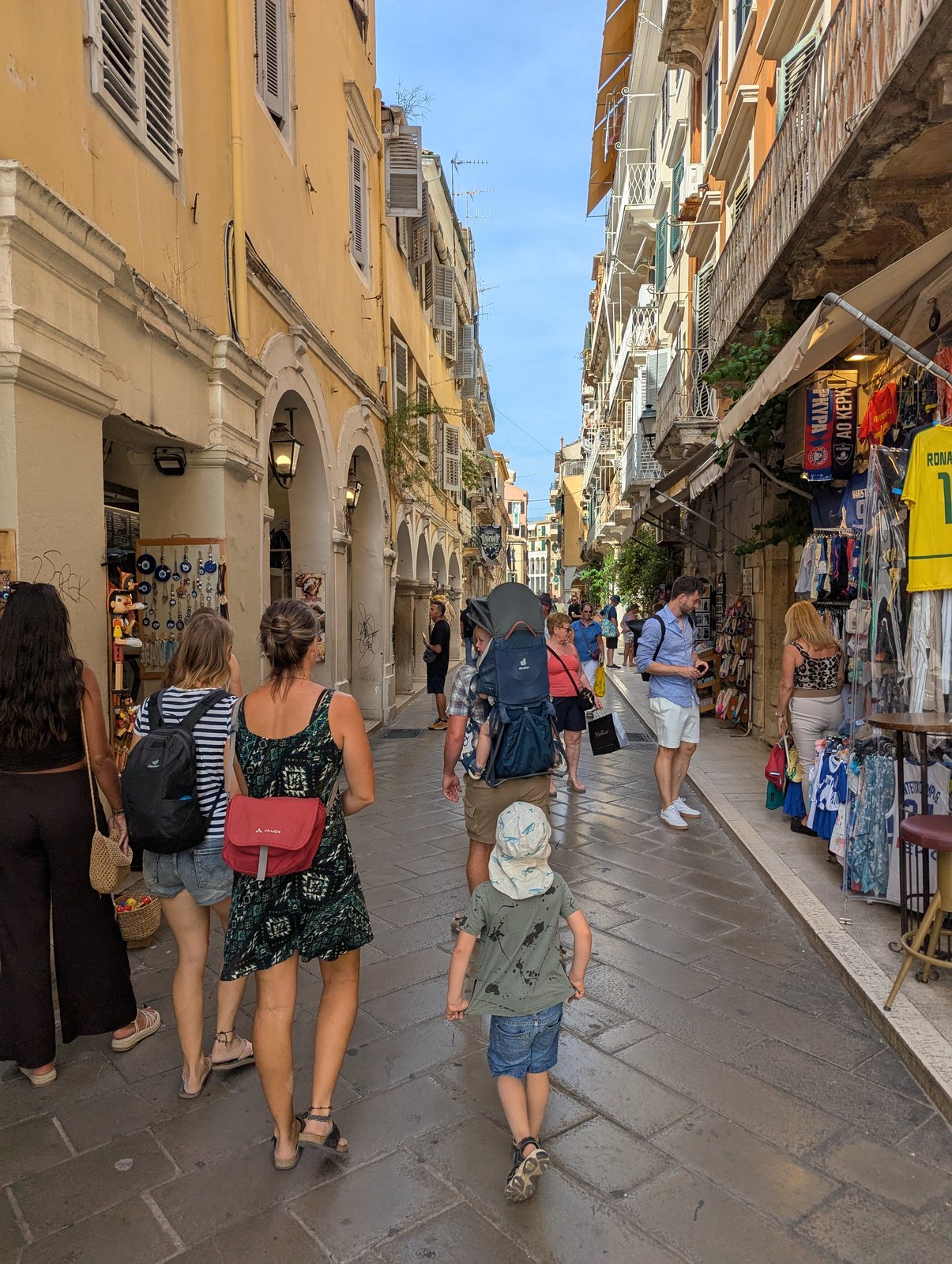 Zurück in Korfu-Stadt nehmen wir zunächst einen Großeinkauf bei Lidl in Angriff und füllen unsere 600-Liter-Wassertanks wieder randvoll, damit wir die wertvolle Zeit mit unserem Besuch entspannt nutzen können. Am 12. Oktober ist es dann so weit. Der Flughafen befindet sich keine 15 Gehminuten vom Ankerfeld und so holen wir die beiden kurzerhand zu Fuß ab. Auch die folgenden zwei Tage bleiben wir in Korfu Stadt und schlendern zu fünft durch die engen schönen Gassen, essen Eis und lassen es uns gut gehen.