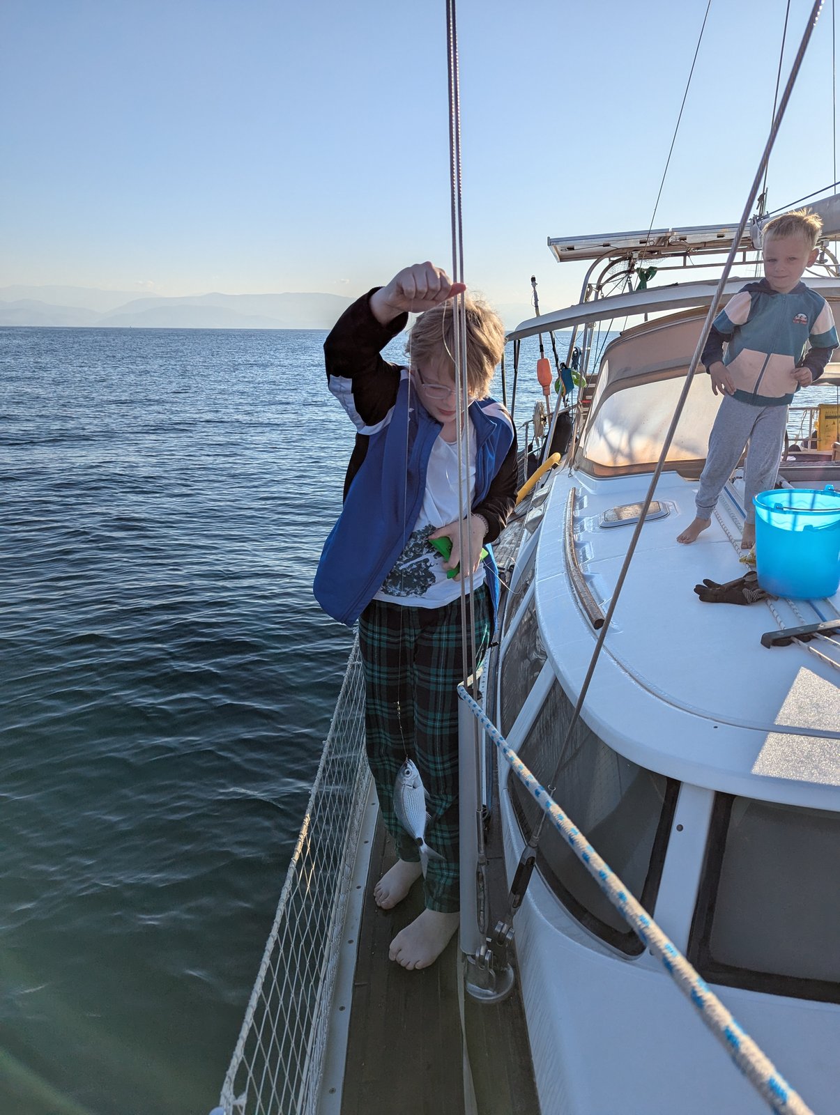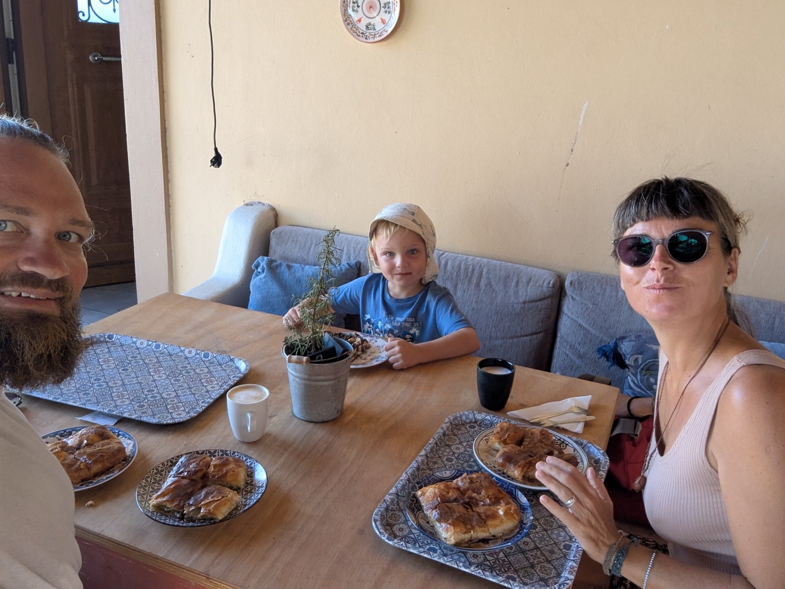 Wir machen noch einen Stop in Plataria, bevor wir nach Igoumenitsa weitersegeln, um eine Sturm- und Gewitterfront abzuwettern. Am Ende bleiben wir über eine Woche in Igoumenitsa und unternehmen sogar einen Ausflug mit dem Bus nach Ioannina, das tief im Inland hübsch an einem See gelegen ist. Eine Empfehlung von einem ortskundigen deutsch-griechischen Pärchen, mit dem wir uns auf unseren täglichen ausgedehnten Spielplatzbesuchen anfreunden. Vor Anker lernen wir dazu noch eine australisch-amerikanische Familie kennen. Nach erster anfänglicher Schüchternheit verschwindet Eric mit den beiden Jungs in deren Spielzimmer auf ihrem Katamaran und kommt erst zu später Stunde wieder hervor.