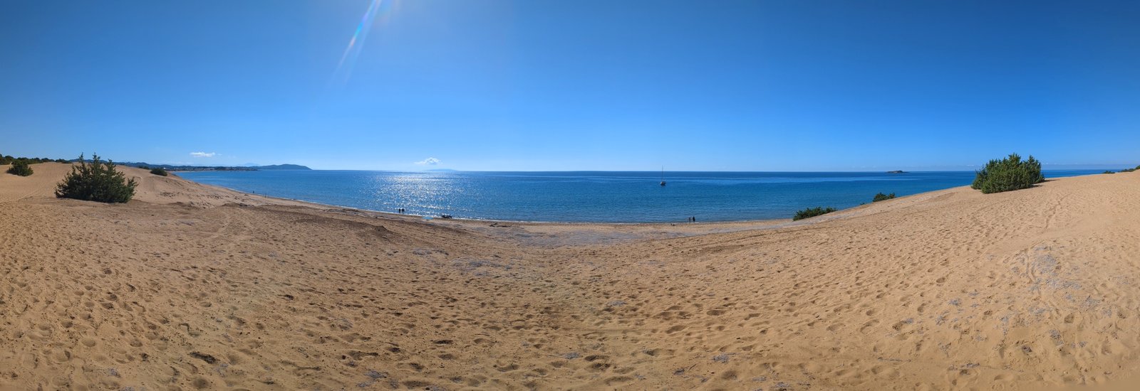 Danach geht es für uns weiter: Kurs Agios Giorgios. Die große Bucht bietet ausreichend Schutz und einen großen Badestrand mit viel Platz was einen deutlichen Kontrast zur wesentlich überfüllteren Ostseite der Insel bietet. Wir haben aber nicht vor lange zu bleiben und segeln am nächsten Tag bereits weiter. Wir lassen auch das vermutlich sehenswerte Palaiokastritsa links liegen, da wir zum einen keinen guten Ankerplatz erwarten und irgendwie lieber mehr Strecke machen möchten um möglichst zügig nach Lakka auf der kleinen Nachbarinsel Paxos zu kommen. Lakka sollte man sich definitiv ansehen haben wir mehrfach gehört. Und so folgen auf der Westseite von Korfu lediglich noch zwei Übernachtungsstops, einer in Emones und einer vor den Dünen bei der Korission Lagune. Letzteren sollte man aber unbedingt mitnehmen.