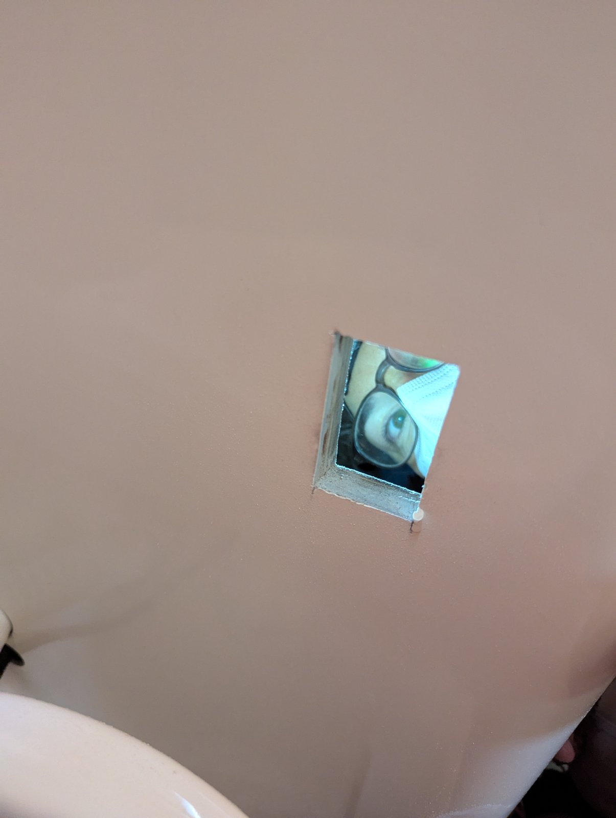 Mit unserem Dremel schäften wir zunächst die Bruchkanten etwas an, damit die Glasfasermatten später besser haften. Anschließend kleben wir vorsichtig von innen soweit wie möglich Panzerband über das Loch, damit die Glasfasermatten anfangs etwas mehr Halt haben und auch kein Epoxidharz nach innen tropft. Dann schneiden wir die Glasfasermatten in passende Stücke und mischen das Epoxidharz an. Wir tränken die Matten im Harz und kleben sie dann vorsichtig in mehreren Lagen auf das Loch. Nach dem Aushärten schleifen wir die Oberfläche noch etwas glatt und bringen eine weitere Schicht Epoxyspachtel auf, den wir ebenfalls nach dem Aushärten noch einmal glatt schleifen.