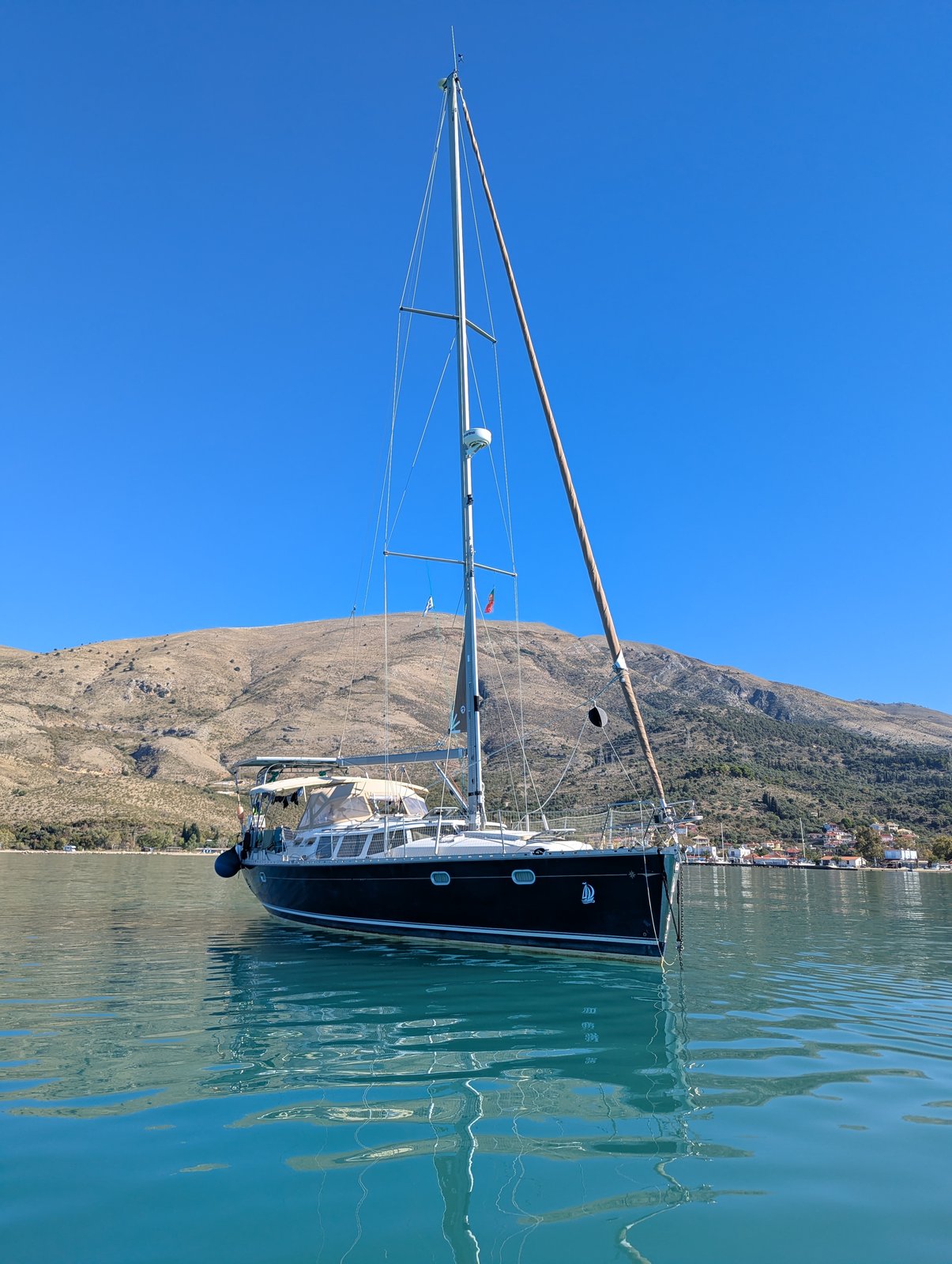 Als schließlich die gerefften Segel gesetzt sind, wirkt die Situation gleich etwas freundlicher. Zwar müssen wir hart am Wind segeln, machen jedoch zunächst genug Höhe um uns halbwegs parallel zum Land gen Süden zu bewegen. Wir wollen jetzt einfach nur noch so schnell wie möglich Preveza erreichen um unsere lange Liste an Einwinterungsarbeiten abzuarbeiten. Drei Tage brauchen wir für die Strecke mit Ankerstopps vor Lefkimmi und Ammoudia. Die ganze Rückreise ist verbunden mit viel Kreuzerei und andauerndem Starkwind, doch zumindest den Nachmittag am Ankunftstag segeln wir bei Halbwind und Sonnenschein. Da wir bereits wissen, dass wir am Montag die ersten im Kran sind, legen wir uns vor der Slipanlage auf die Lauer und reklamieren den Platz in der Anlage für uns nachdem das letzte Schiff abgefertigt wurde. Natürlich haben wir das vorher mit dem Trockendock so abgesprochen.
