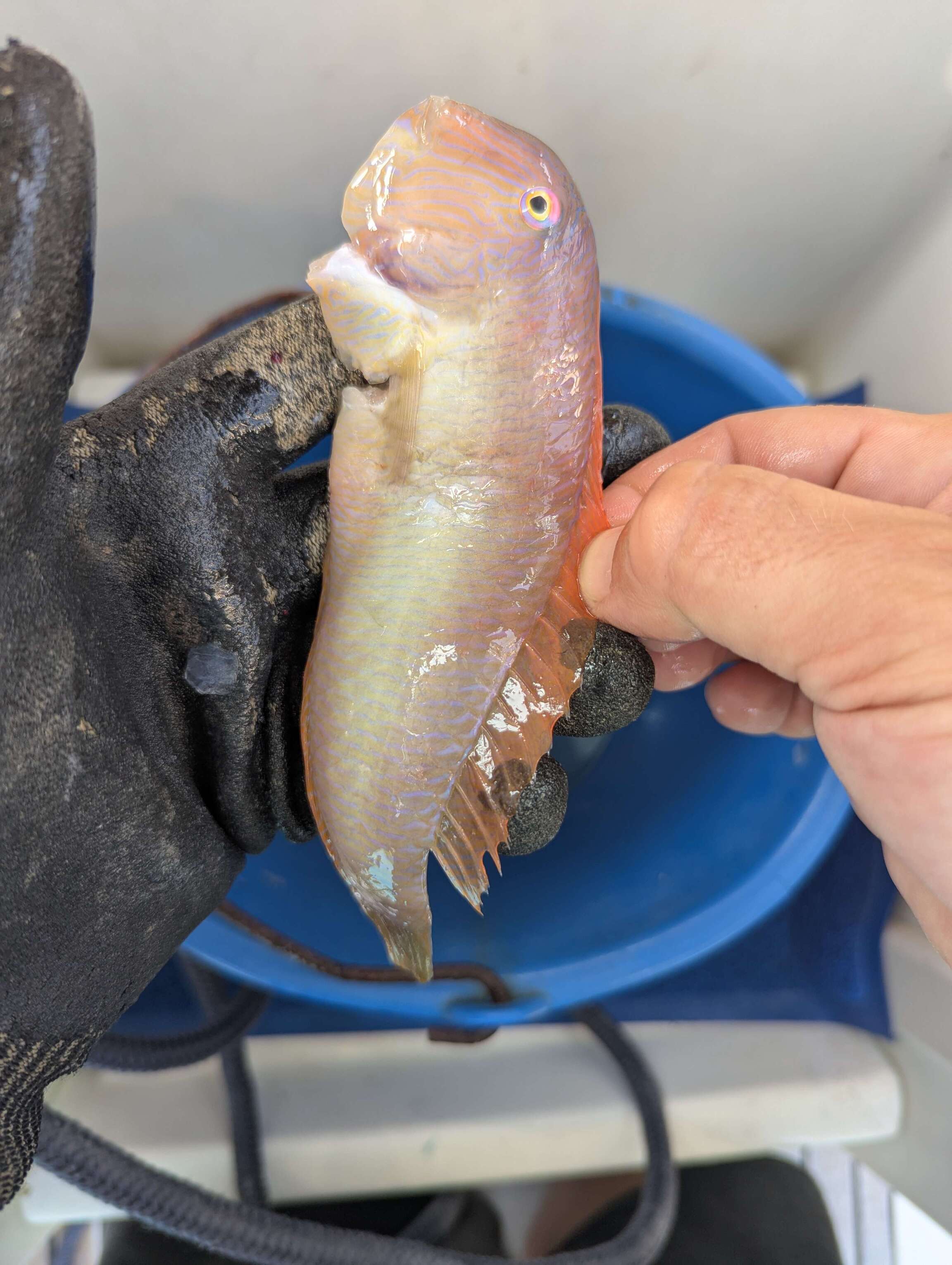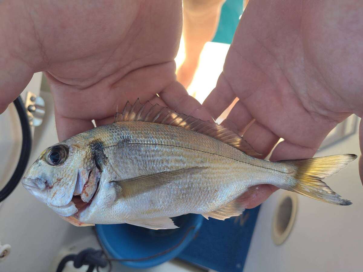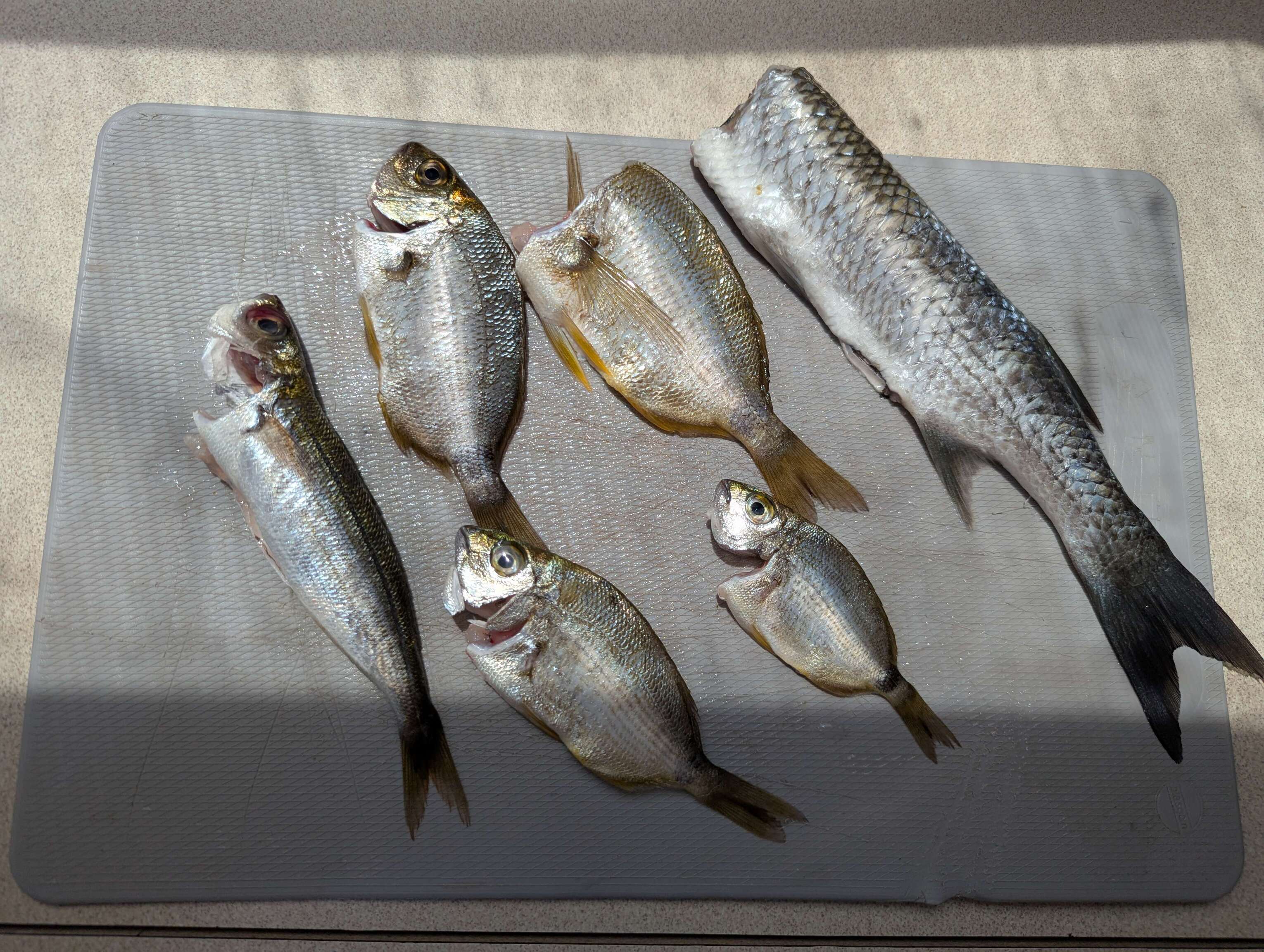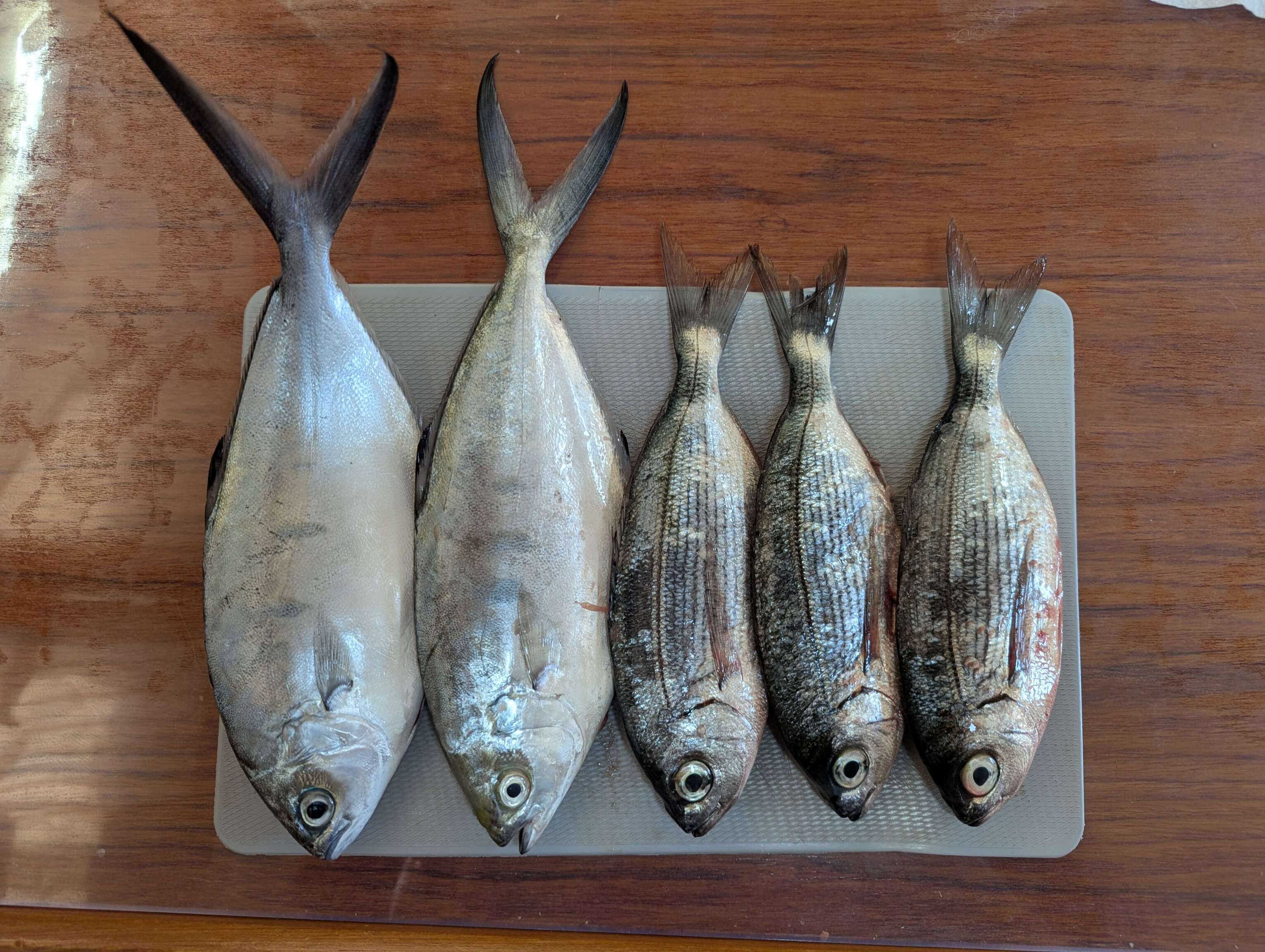 Auf Ithaka geht uns ein ganz besonderer Fisch an den Haken. Ein Schermesserfisch. Eigentlich eher etwas fürs Aquarium doch bei uns landet so ziemlich alles in der Pfanne, was nicht giftig ist. Frei nach dem Motto: "Mit genügend Mehl, Butter und Knoblauch schmecken sie alle". Fazit: Schmeckt hervoragend! Eric ist bei uns an Bord übrigens der größte Fischliebhaber und verputzt problemlos einen Fisch alleine. Vormittags laufen wir die Bucht von Vathy an und wundern uns noch über die wenigen Boote vor Anker.