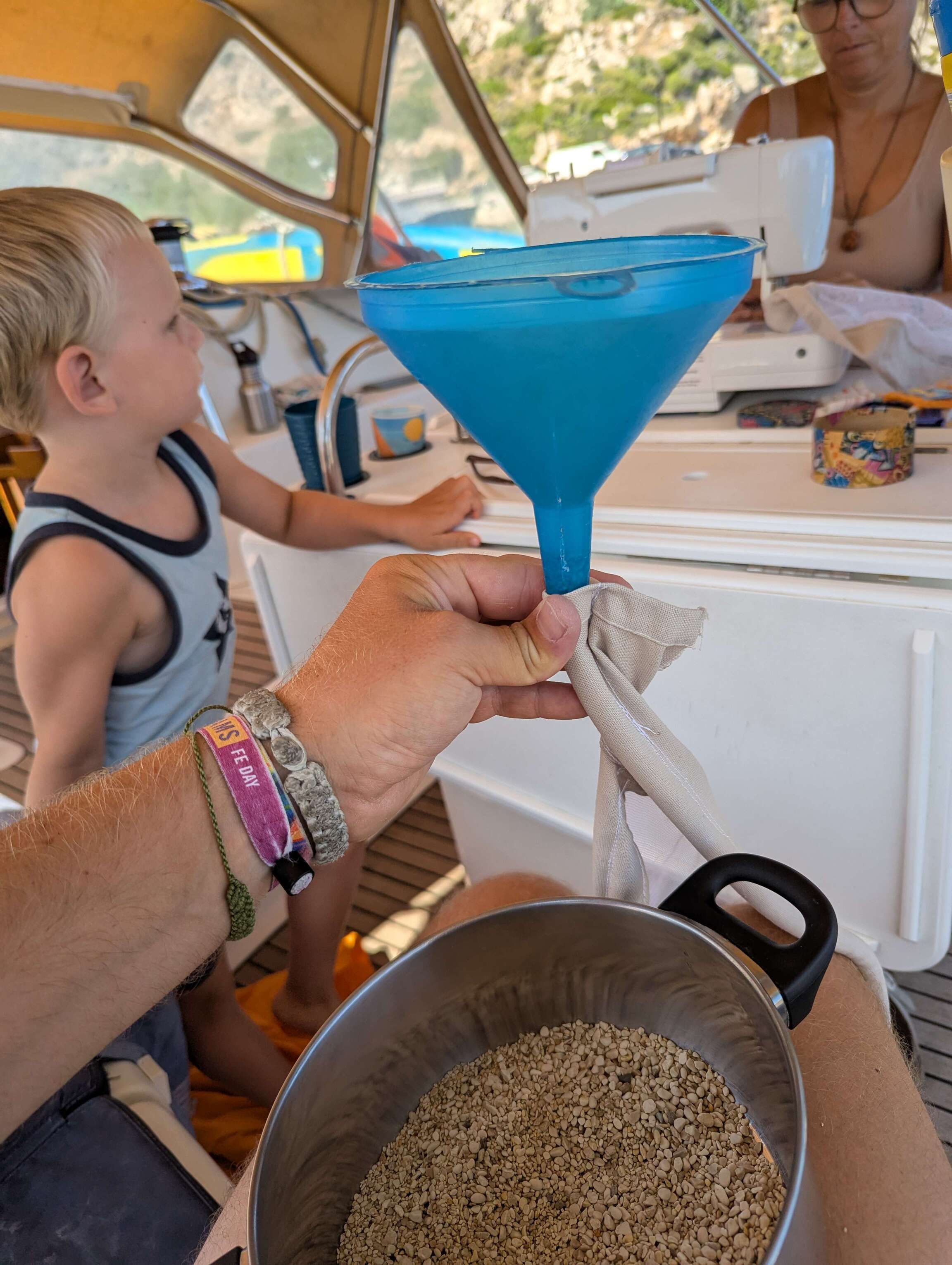 Unter Realbedingungen bei einer Crew, die nur aus zwei Erwachsenen und einem Kleinkind besteht, bei schwerem Wetter, rauer See und Dunkelheit, wäre die Herausforderung jedoch eine völlig andere und deswegen ist das allerwichtigste an Bord überhaupt das Überbordgehen unbedingt zu vermeiden. Hierfür sorgen entsprechende Sicherheitsvorkehrungen wie Strecktaue, Rettungswesten mit Lifebelts und klaren Protokollen für die verschiedenen Situationen.