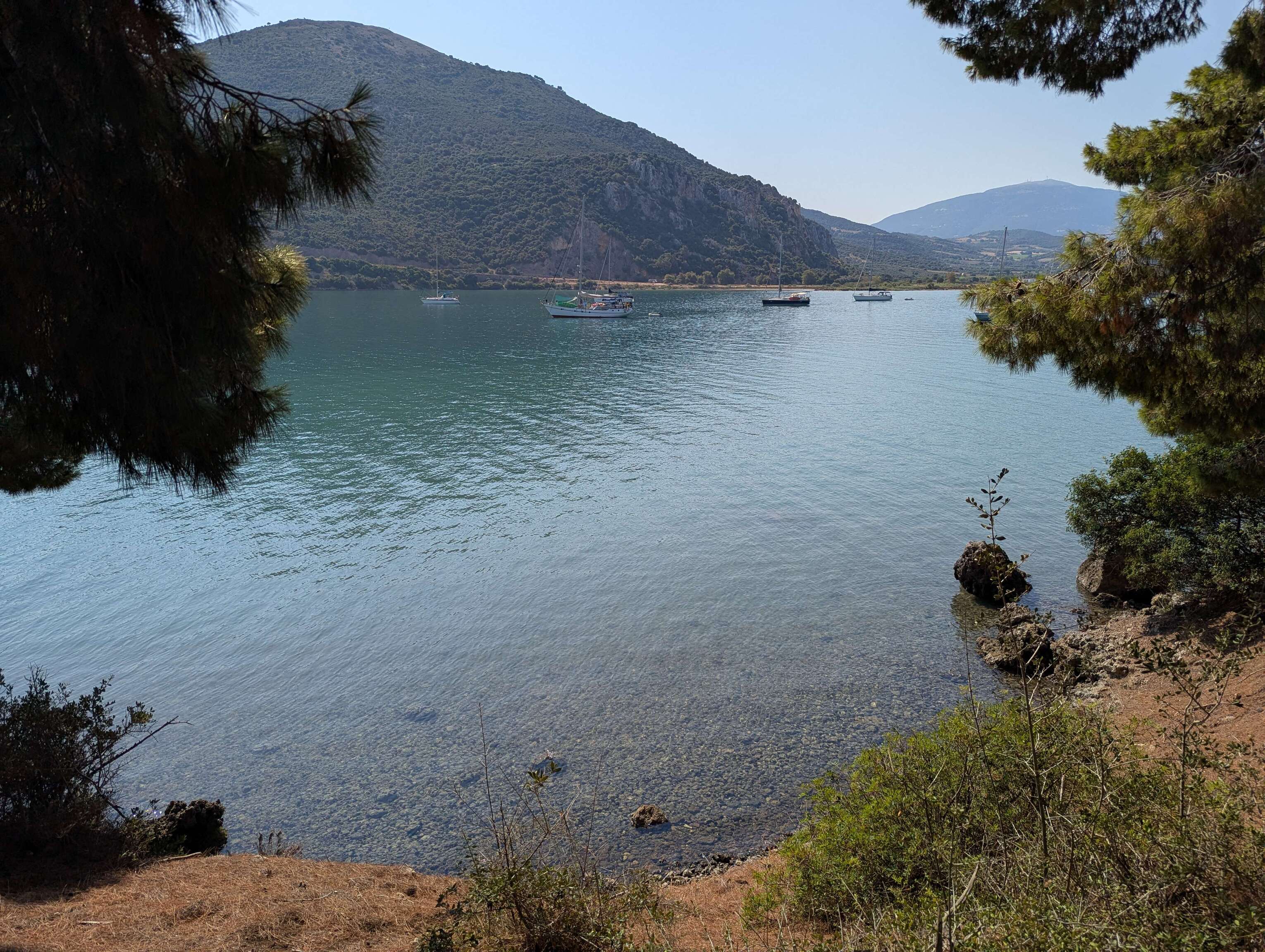 Nach zwei Tagen an der Boje segeln wir nur wenige Meilen nach Süden und lassen vor Xigia den Anker fallen. Niemals haben wir klareres Wasser gesehen. Zudem sehen wir eine große Schildkröte, die in aller Ruhe am Meeresboden verweilt. Ein wunderschöner Anblick. Der Strand ist bekannt für seine Schwefelquellen, denen eine heilende Wirkung nachgesagt wird. Eine feine Nase mag einen dezenten Schwefelgeruch wahrnehmen, aufdringlich ist dieser jedoch nicht. Wir nutzen das glasklare Wasser um mit Pfannenwender bewaffnet dem Bewuchs am Rumpf der Wanderer etwas Einhalt zu gebieten.