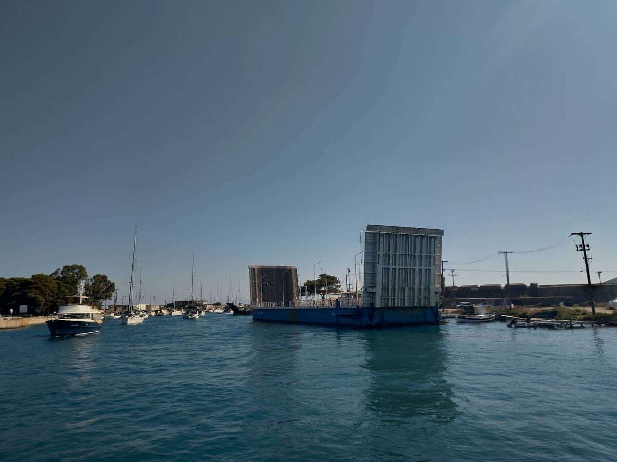 Die Brücke bleibt nur 15 Minuten offen und wir errechnen uns eine sinnvolle Zeit für die Einfahrt in den Kanal. Ein Schiff fährt sich nicht wie ein Auto und eine lange Karawane von Booten in einem engen Kanal kann bei Seitenwind schnell den Puls in die Höhe treiben. Einige Boote drängeln und überholen, was für uns nicht wirklich nachvollziehbar ist, da jedes Boot einen Vordermann hat, der ebenfalls durch den Kanal möchte. Vielleicht sind es die gleichen Menschen, die im Stau auf der Autobahn auf dem Standstreifen an allen vorbei fahren. Am Ende landen wir auf einem der letzten Plätze und passieren um 10:20 die Brücke. Der Brückenführer treibt mit wilden Gestiken noch den Gegenverkehr an, den die Schlange in die Gegenrichtung ist zu diesem Zeitpunkt noch etwas länger als unsere. Von anderen Seglern haben wir berichtet bekommen, dass die Brückenführer nicht immer so kulant mit der Zeit sind und die Brücke auch schon so manchem Boot vor der Nase zugemacht wurde. Verständlicherweise muss der Brückenführer auch die Autoschlange berücksichtigen, die entsprechend wächst, je länger die Brücke für die Seefahrt geöffnet bleibt.